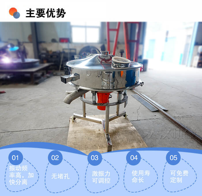 采用了高頻振動(dòng),振動(dòng)頻率高達(dá)1500-7200轉(zhuǎn)/分,使得物料在篩面上產(chǎn)生高速振動(dòng),可以加快物料之間的分離,篩分效果更為顯著;