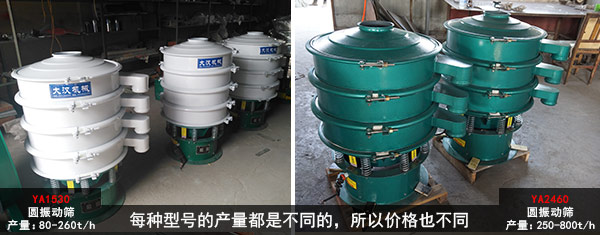 YA圓振動篩和YK圓振動篩型號眾多,每種型號的產量都是不同的,所以價格也不同。以大漢YA圓振動篩為例,在不考慮其其它因素的情況下,YA1530圓振動篩產量80-260t/h,而YA2460圓振動篩產量為250-800t/h,所以YA2460圓振動篩相較YA1530圓振動篩會稍貴一些。由此可見不同型號的圓振動篩,其產量都有如此大的差異,所以其價格肯定會有所波動。