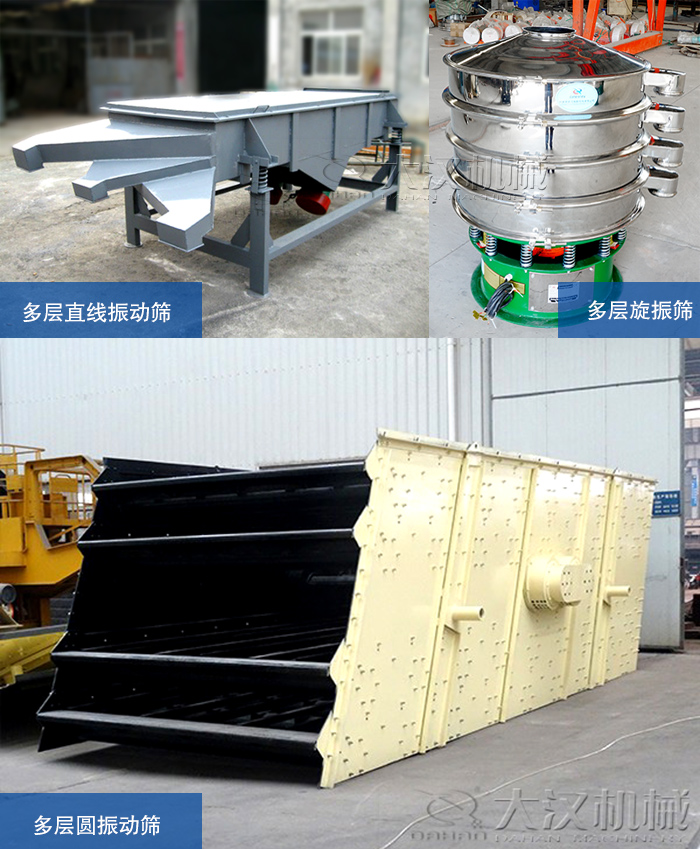 1、型號多,我們的多層振動篩主要包括多層直線振動篩,多層旋振篩,多層圓形振動篩,多層圓振動篩等等,涉及領域及篩分物料也非常廣泛。