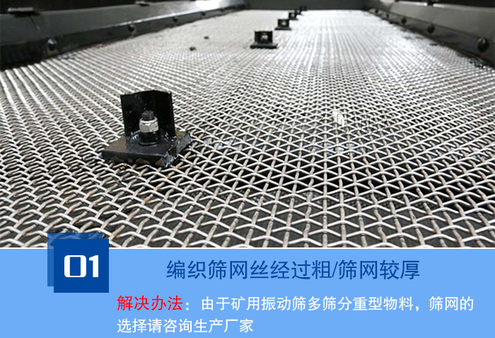 解決辦法:由于礦用振動篩多篩分重型物料,篩網的選擇請咨詢生產廠家,這里建議您可以咨詢大漢礦用振動篩廠家,我們有專業的技術工程師與您對接。