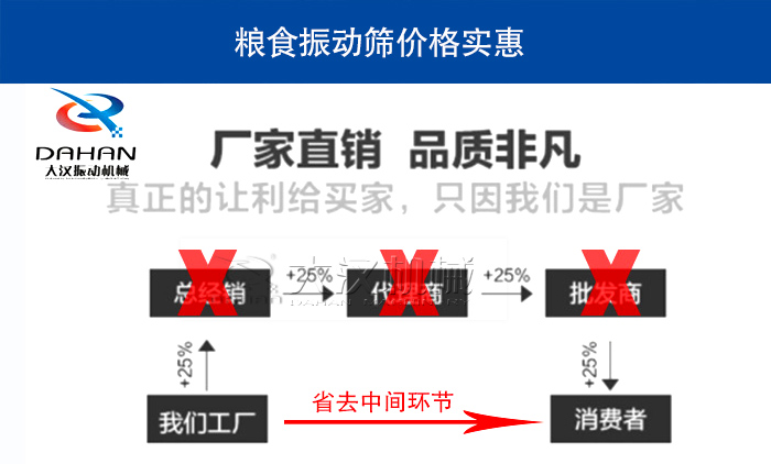 大漢糧食振動篩廠家直銷,沒有中間商賺差價,中間可免去不少的差價成本,糧食振動篩價格更加便宜。