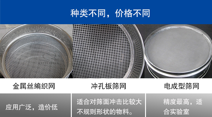 振動篩篩網常見的有金屬絲編織網、沖孔板篩網、電成型篩網等三種,不同種類的篩網在制作工藝上是不同的,所以價格也是不同的。