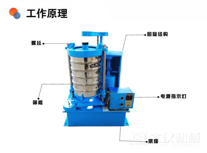 振篩機又稱標準振篩機,大漢振篩機又拍擊式振篩機和頂擊式振篩機兩種,設備廣泛用于實驗室,質檢室等領域,振篩機可配備專用夾具,即可裝夾ф200標準篩,又可夾裝ф75、ф100套篩,裝夾方便靈活,夾緊牢固,并能自動停機。