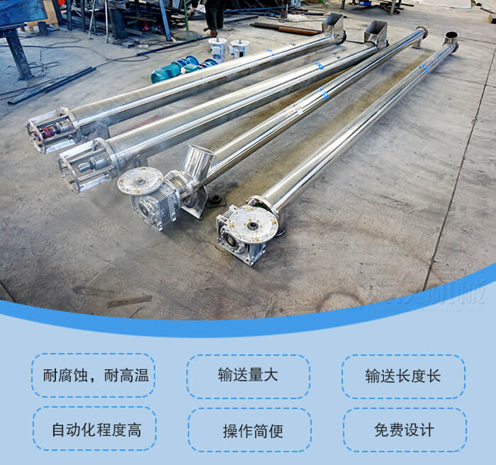 不銹鋼螺旋輸送機采用304/316L不銹鋼材質制成,輸送過程中原料完全不受污染,不帶入任何異物,能使生產過程中實現全封閉自動化。 安裝方便,并可移動,如多臺拌料機使用同一種料,只需一臺上料機可同時供多臺擠出機上料,免除人工加料的麻煩,使加料工作變得更安全、更省時、更省力。化工、電力、煤炭、機械、輕工、糧食及食品行業,適宜輸送有腐蝕性的粉狀、顆粒狀、小塊狀物料,如氯化鈉、煤粉、化肥、灰渣、焦炭等。不宜輸送易變質、粘性大、易結塊的物料。