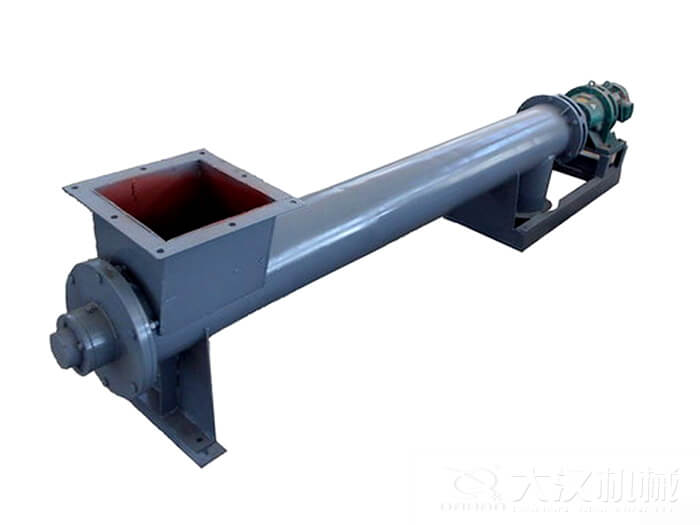 絞龍螺旋輸送機是利用旋轉的螺旋將被輸送的物料沿固定的機殼內推移而進行輸送工作,頭部及尾部軸承移至殼體外,吊軸承采用滑動軸承設有防塵密封裝置,軸瓦一般采用粉末冶金,輸送水泥采用毛氈軸瓦,吊軸和螺旋軸采用滑塊連接。