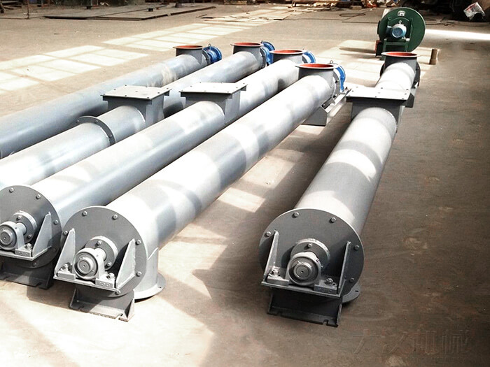 管式螺旋輸送機是利用旋轉的螺旋葉片將物料推移而進行螺旋輸送機輸送,使物料不與螺旋輸送機葉片一起旋轉的力是物料自身重量和螺旋輸送機機殼對物料的摩擦阻力。螺旋輸送機旋轉軸上焊的螺旋葉片,葉片的面型根據輸送物料的不同有實體面型、帶式面型、葉片面型等型式。